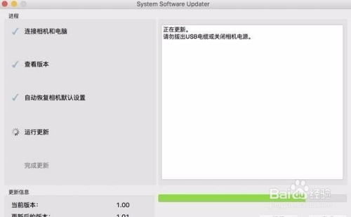 注重:确保相机电量达到80%以上。接着将相机菜单里的“usb链接”选择为“海量储存器”,将数据线把相机链接到电脑。相机与电脑毗连当作功后,打开之前下载好的SystemSoftwareUpdater安装图标,进入到安装页面,只需点击运行,直到安装完当作即可。鄙人载页面有具体的安装过程介绍,感觉复杂也要当真看。
