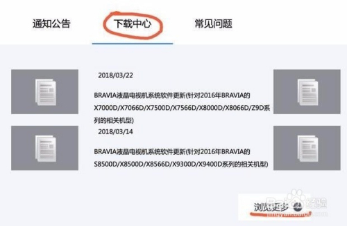 打开索尼官网链接:http://service.sony.com.cn/index.htm,找到“下载中间”———点击“浏览更多”