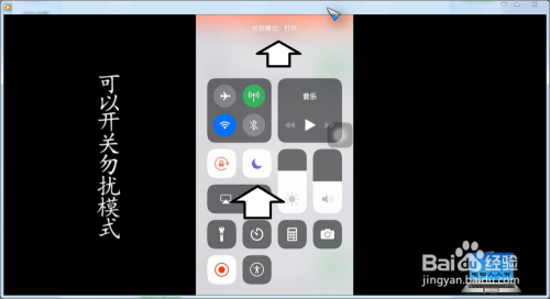 除此之外,利用手指从屏幕底部往上划,快捷菜单中也能打开或封闭勿扰模式。