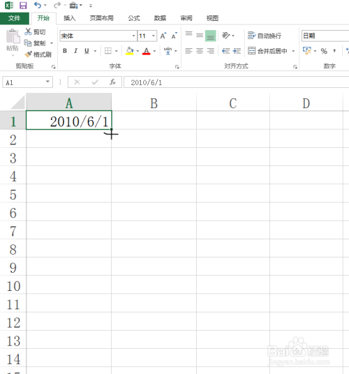 首先在单位格中输入2010/06/01(或2010/6/1),本教程就以在A1单位格中输入该日期为例。