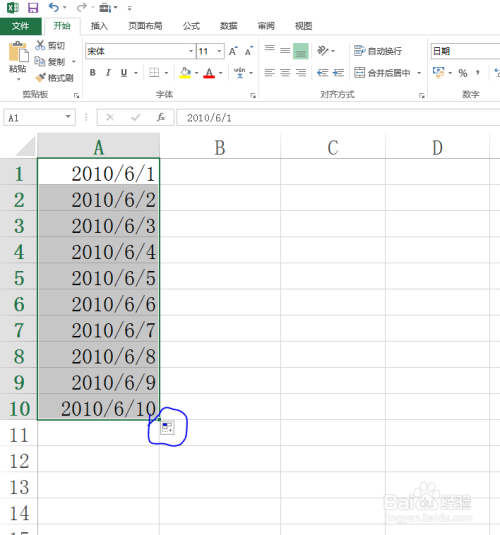 教程以输入每年六月一号日期为例,从2010年六月一号起头到2019年六月一号。