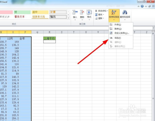 点击排序和筛选,选择里面的筛选功能