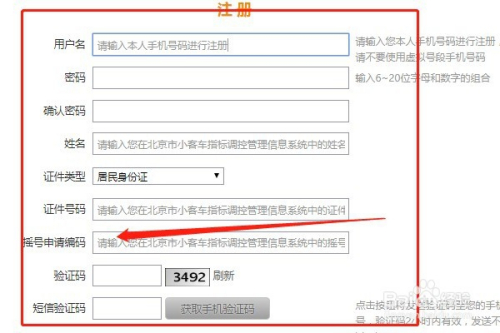 第二步:我们点击完注册之后,会弹出来让我们输入小我信息,一般的信息都不消介绍了,此中有一点就是要填写小轿车摇号的编号。