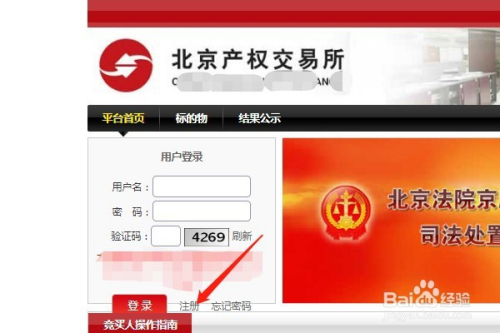 第一步:我们首先来到海说神聊京产权买卖的平台,可以看到登录账户的窗口下方有个注册选项,我们点击:注册。