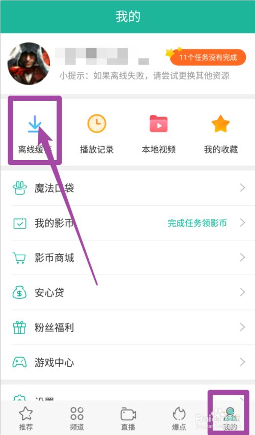 下载完当作撤退退却出,点击【我的】—【离线缓存】