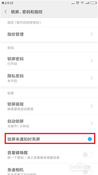 找到【锁屏来通知时点亮屏幕】,把后面的开关给打开,如许当手机锁屏的时辰手机有来电显示会主动亮屏幕。