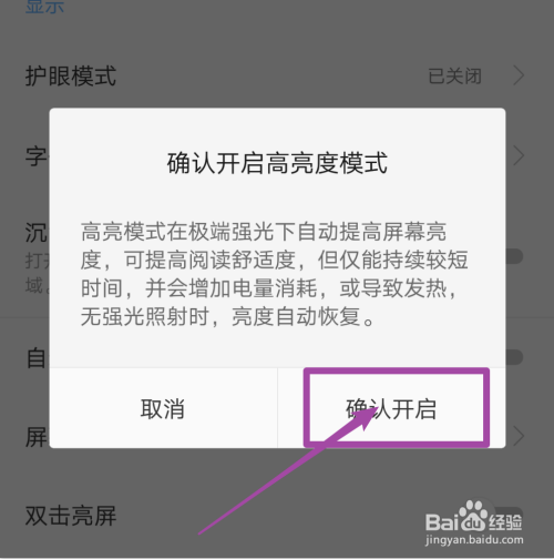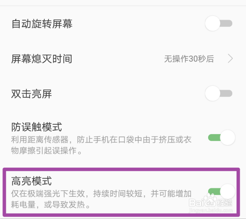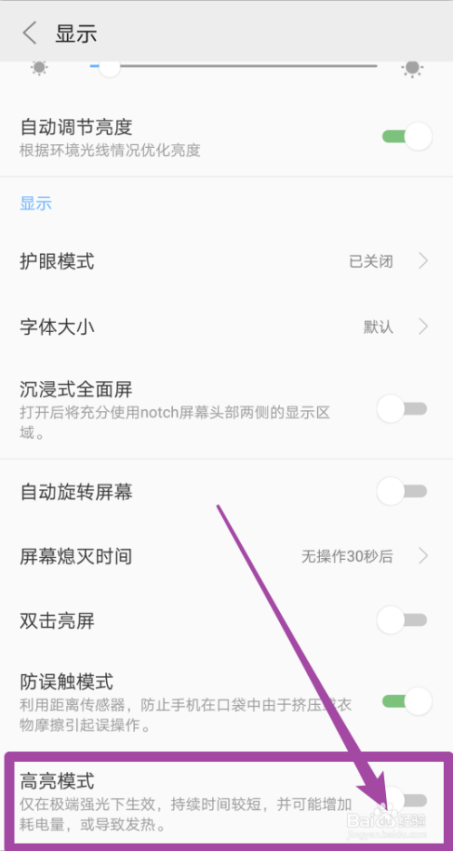 进入显示,在最下方就可以看到【高亮模式】了,点击打开