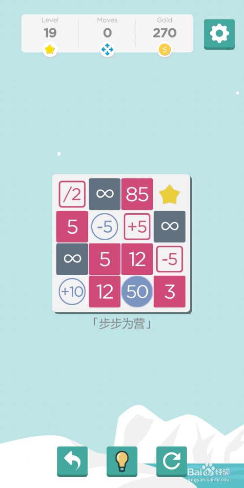 进入到游戏后就能看到如许的页面了,玩家需要将蓝色填充的圆形数字移动至黄色五角星位置才能过关,而移动时会与图示方格中的数字发生四则运算,若是半途蓝色填充的圆形数字变为0或小于0时,游戏就会竣事。只有这个数字达到终点时依然年夜于0才能算是当作功过关。下面来说下具体法则: