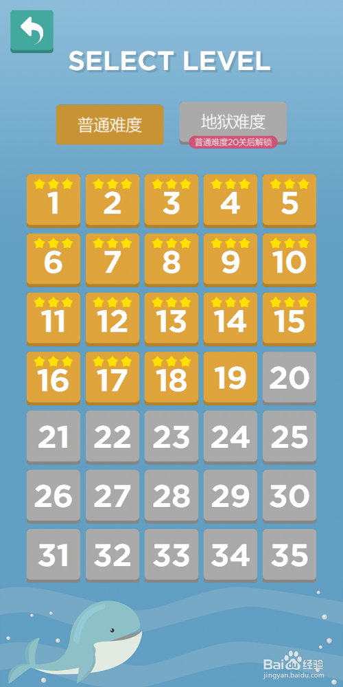 进入游戏后,我们可以看到一个关卡的选择页面,关卡从难度上分可以分为通俗难度和地狱难度两种,不外玩家最起头是没有选择机遇的,只能从通俗难度第1关起头玩起,当通俗关卡20关过关后,地狱难度才会解锁。