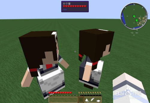 第四步拿着羽毛对女仆按右键,使其处于自由模式。
