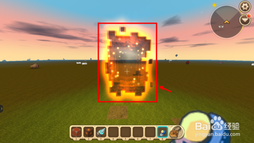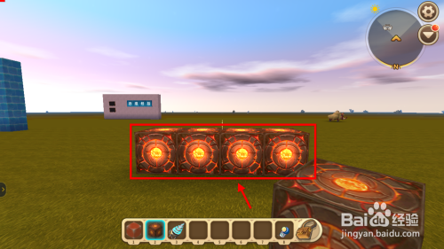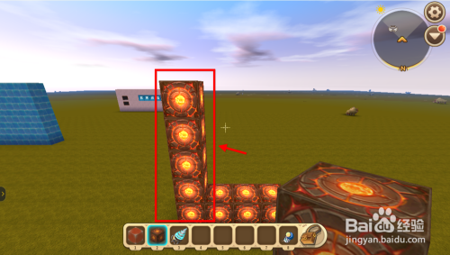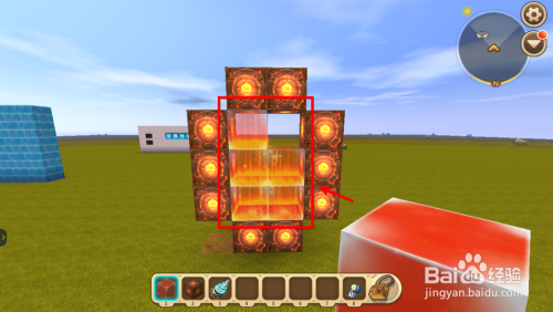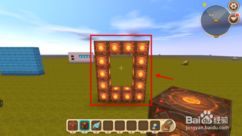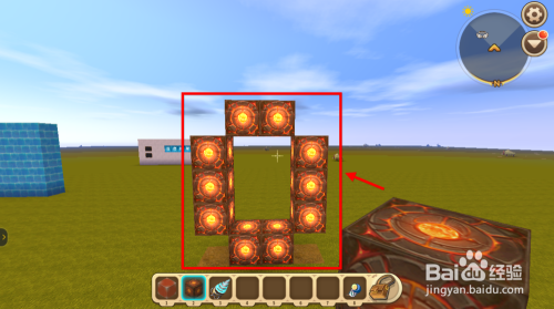 缔造模式下将地心门框掏出来横着摆放4格,然后在顶端竖着摆放4格。