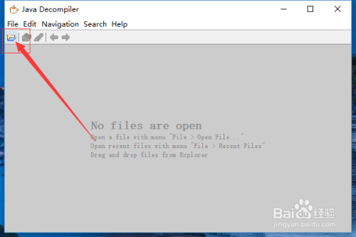 打开jd-gui东西,点击如图标识表记标帜图标,进行选择文件;