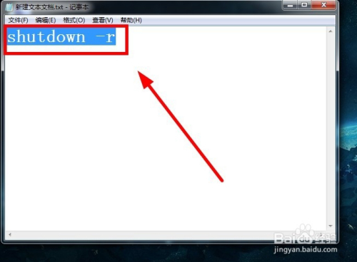 在新建好的文本文档中输入“shutdown -r”