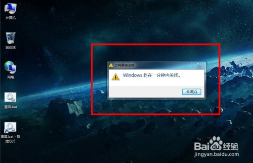 建立好快捷体例后,点击该法式,可以看到提醒“Windows将在一分钟内封闭”,申明法式起头生效