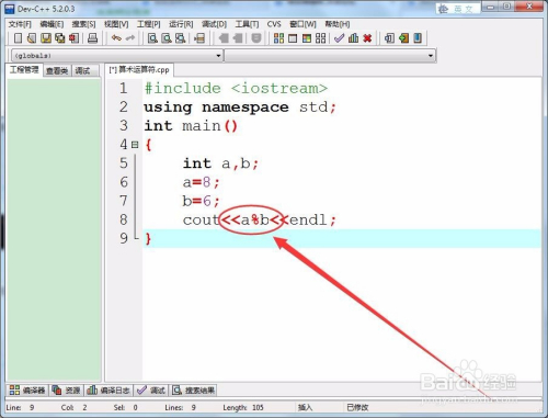 测试法式,运行成果为2,即取模运算是求两个整数相除的余数。