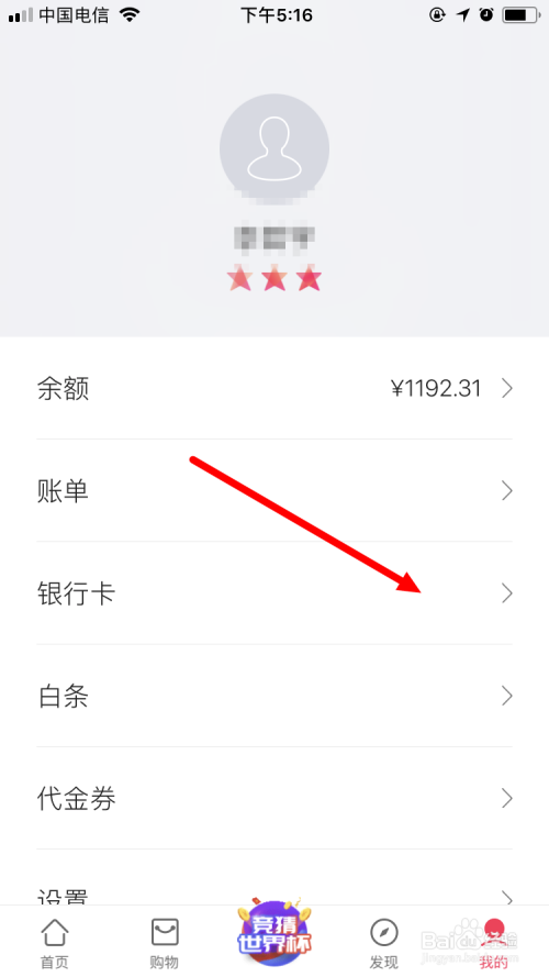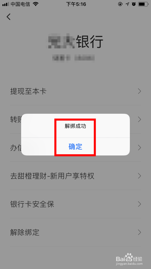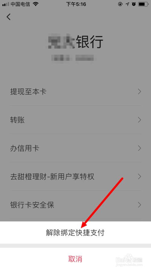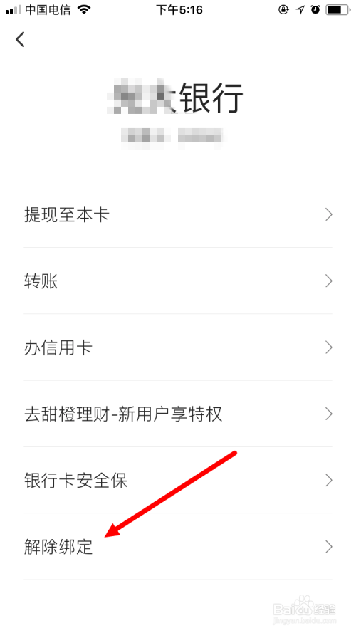 进入下图的页面后,点击最下端的 解除银行卡 。