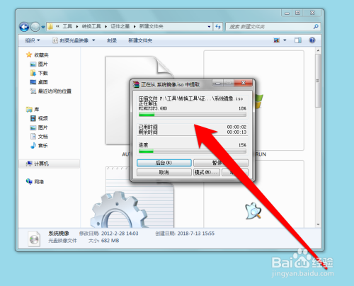 点击解压按钮后,系统起头解压ISO文件。