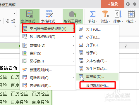 - 3点击凸起显示单位格法则,点击其他法则