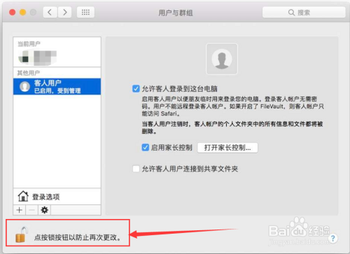 首先在Mac电脑上打开【系统偏好】>【用户与群组】,你就可以看到【本身的账户】和一个默认存在但还没有开启的【客人用户】。
