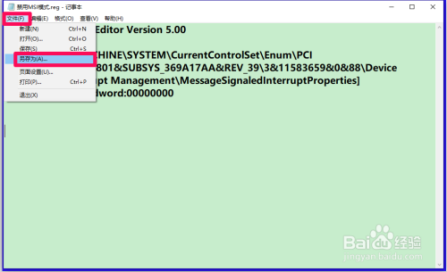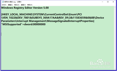 第二步:建造一个禁用MSI模式.reg注册表文件添加到注册表编纂器中。