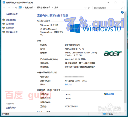 好了,关失落本来打开的系统属性界面,再次打开,就可以看到结果了。