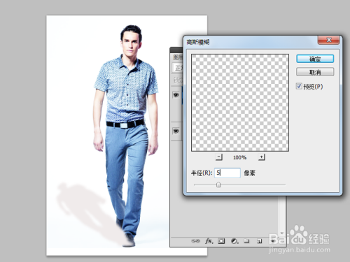 执行滤镜-恍惚-高斯恍惚号令,设置半径为5像素,点击确定按钮。