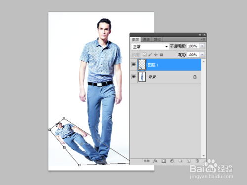 选择图层1,执行ctrl+t组合键,接着按住ctrl键不放调整位置。