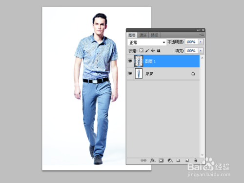 选择魔棒东西接着选区布景色,执行选择-反标的目的号令,选择人物,执行ctrl+j复制的图层1.