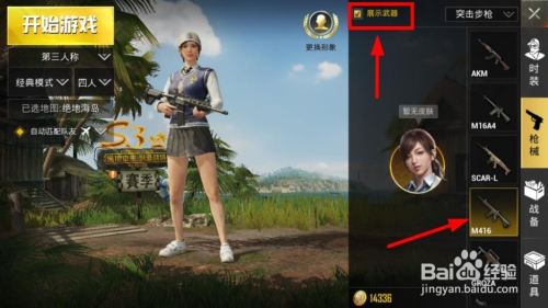 选中间仪的兵器装备,小编仍是比力中意M416的,同时勾选展示兵器
