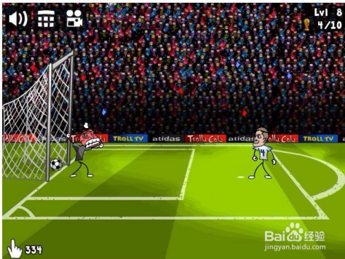 接着小贱就会跑出来,将金色足球踢到电视机的球网里边,然后就过关了。