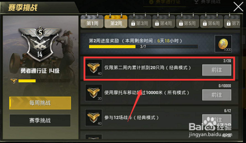 如图,在每周挑战第二周使命中,就有一个关于累计抓到20只鸡可以获得40奖章的使命,此刻鸡的感化大师知道了吗?