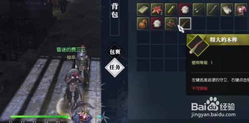 在巡逻的背后利用木棍敲晕他