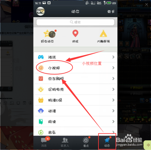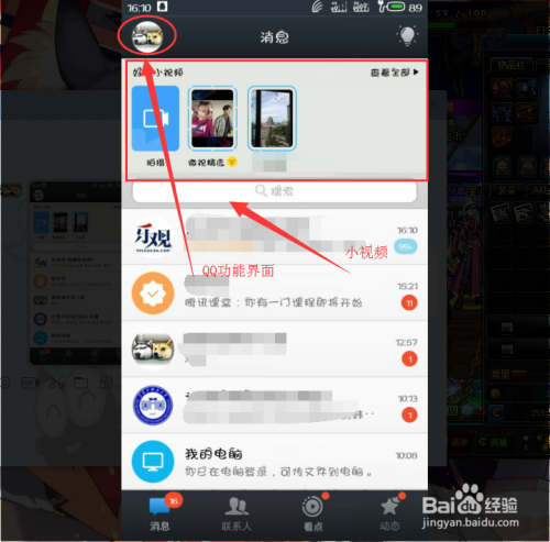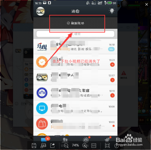 封闭QQ小视频步调五:封闭今后,我们再一次下拉手机QQ动静栏刷新。发现已经没有老友小视频这个功能了。