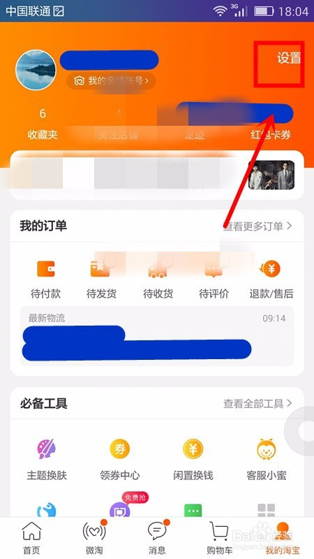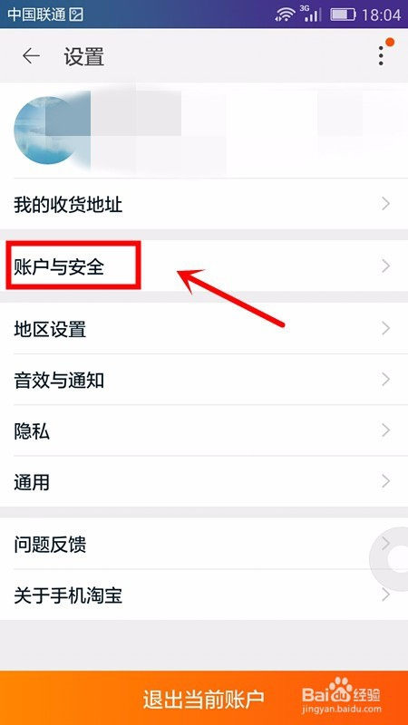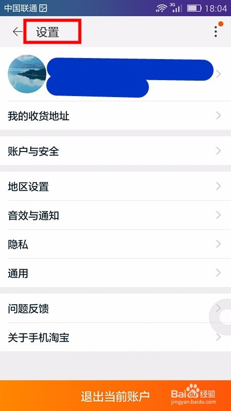 这时就可看到打开的淘宝设置页面,在页面上可看到头像、账号及其它的功能设置项;