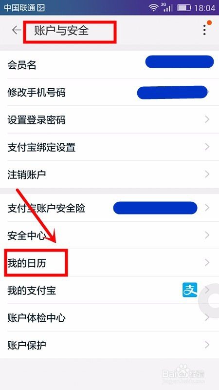 接下来在该设置选项中可以看到我的日历选项,点击该选项内容;