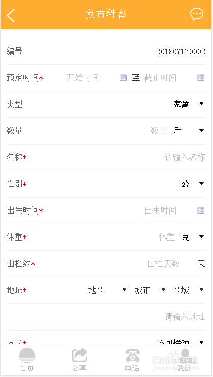 第三步:点击“牲畜办理”在这里我们可以发布本身的农产物和浏览已经发布的农产物,如何发布可以参考引用经验,我们需要对本身的农产物有一个精确的定位,如许才能更好的填写信息,如图: