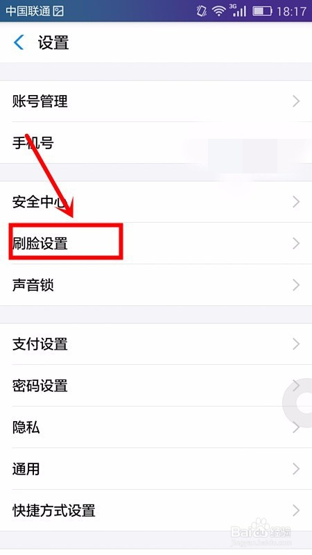 在打开的应用设置页面中选择刷脸设置选项;