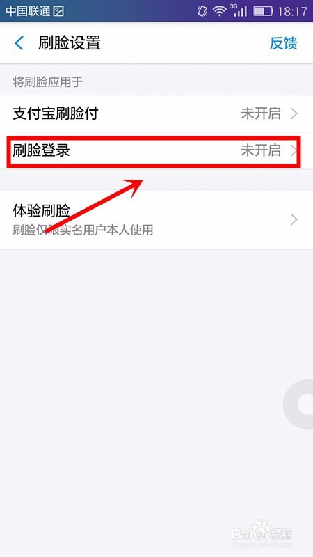 我们若是要将其功能打开,则点击选择刷脸登录选项;