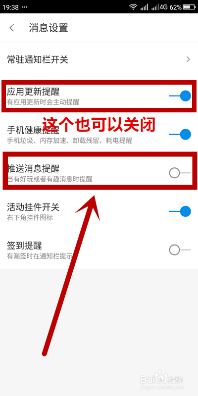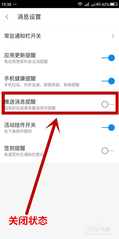 在动静设置页面找到“推送动静提醒”,看是否是灰色,不是就申明动静推送提醒是开启状况,点击使这个开关由蓝色变灰色,封闭它。