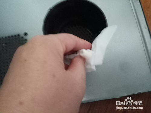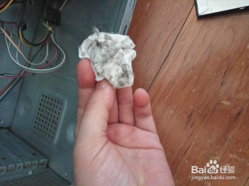 还有机箱上的散热孔,也吸附满了尘埃,可以用抹布或者纸巾,进行拭擦。