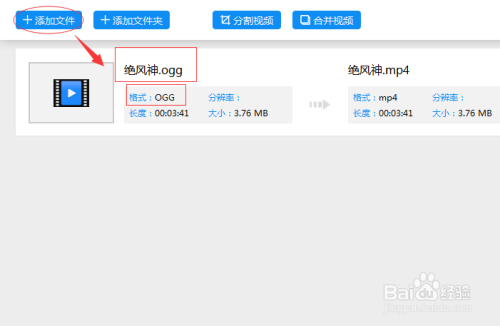 打开软件点击添加文件找到要转换音频格局的ogg格局音频添加上。