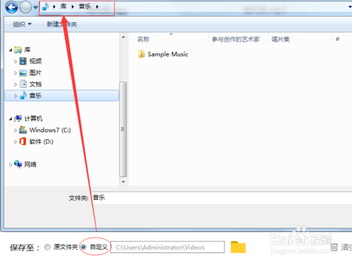 点击软件下方的自界说保留地址,选择音频文件转换当作功后保留的处所。