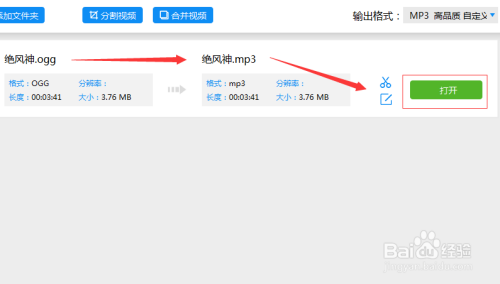 确认无误后点击转换期待ogg格局转换当作mp3格局,当作功后会显示打开。