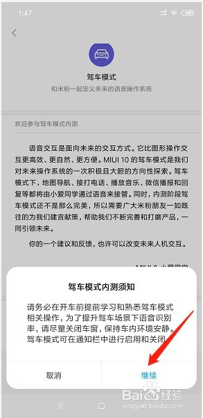 第五步:我们点击完介入驾驶模式打算之后会弹出来一个让我们点击继续的窗口,我们点击:继续。