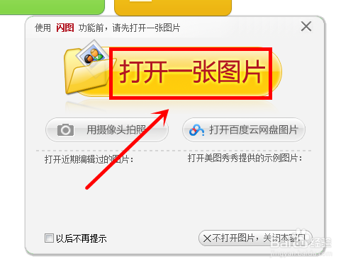 接着,我们会在软件页面上方呈现提醒框,我们点击打开一张图片的按钮;