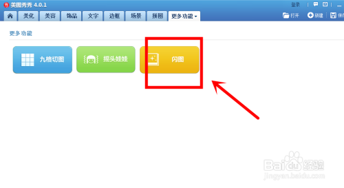 这时我们会在更多功能模块下找到闪图选项,点击选择该选项;