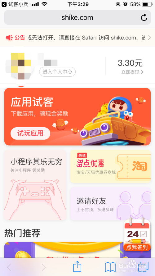 打开试客小兵点击起头赚钱。