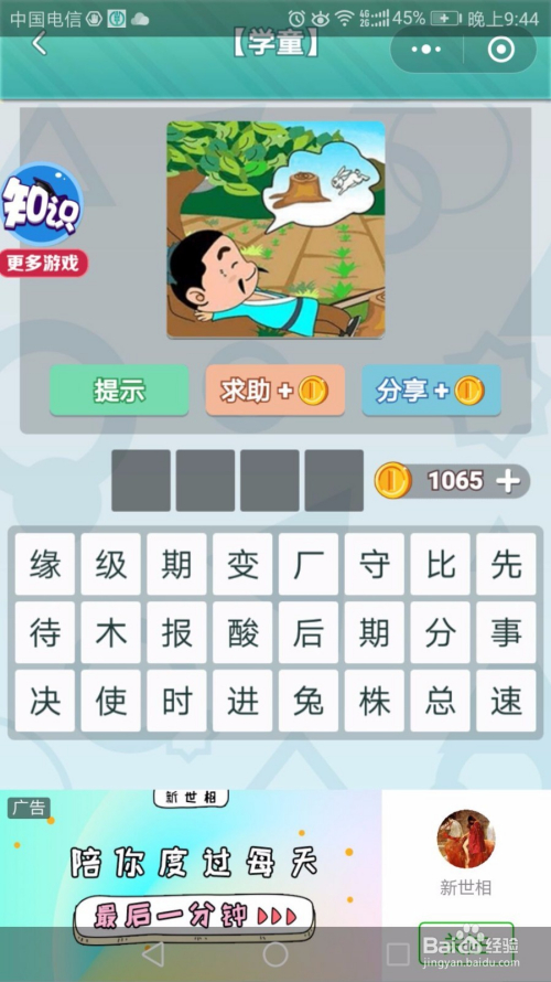 最后再来看看第4关,里面的图片,和第1关近似,和语文书上画的意境一样。