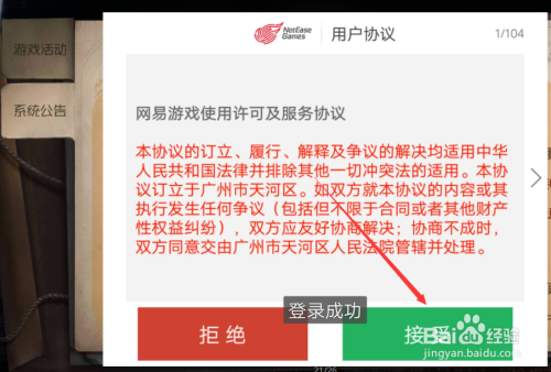 输入游戏的账号和密码,没有的话可以注册一个,然后需要接管许可和谈,当然是点击接管按钮啦,否则怎么玩游戏呢。