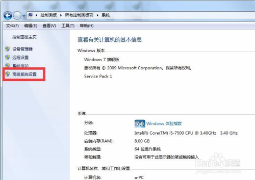 首先打开电脑的系统属性,然后在系统属性中找到高级系统设置
